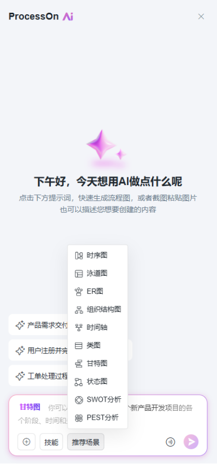 现在不一样了。ProcessOn AI支持一键生成甘特图,你只需要描述需求,AI就能在10秒内生成结构清晰、时间合理、任务明确的甘特图。