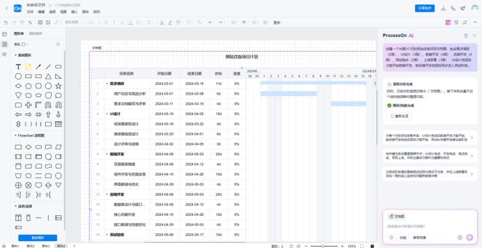 ProcessOn AI经过专门训练,生成的甘特图任务结构合理、时间排期科学、依赖关系正确,可以直接用于项目汇报和进度跟踪。