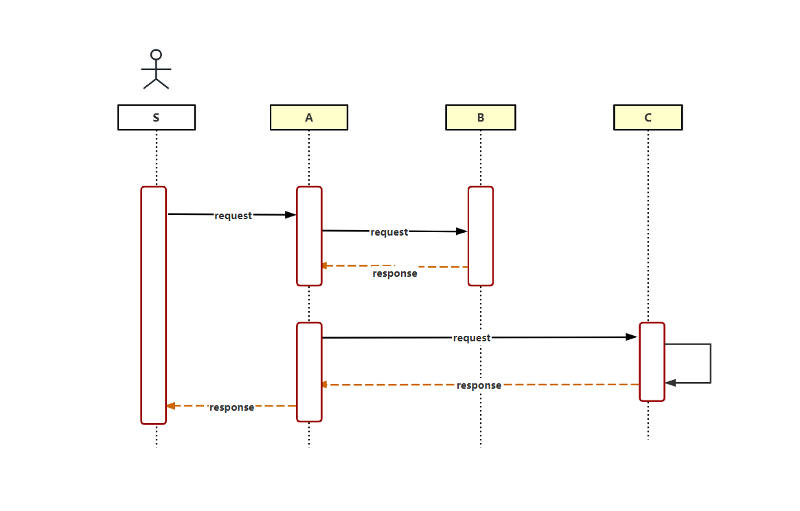 同步消息(实线箭头):发送后需要等待返回(如API调用)