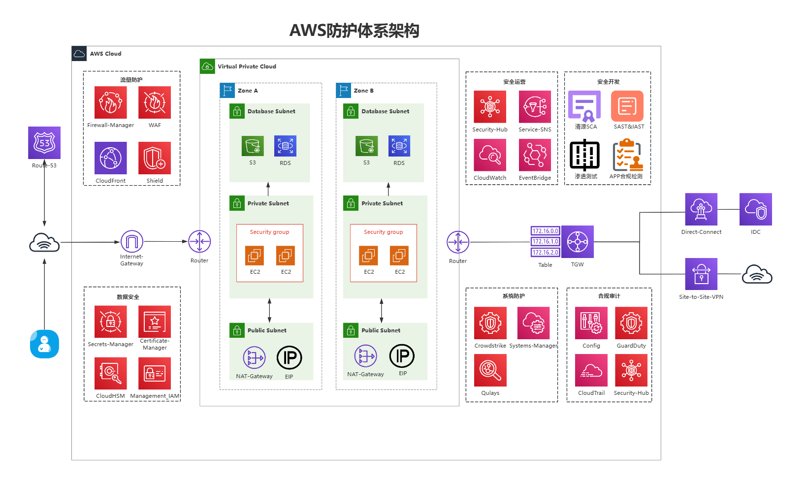 合规和审计:在合规性审查和审计过程中,使用架构图来证明AWS环境的配置符合相关标准和要求。