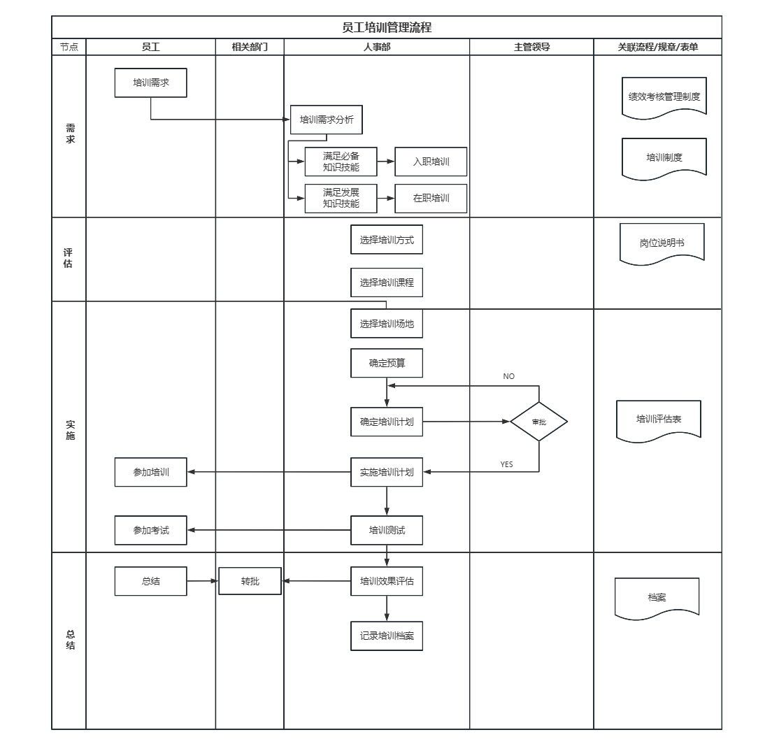 你可以在流程图的节点上添加链接,关联到具体的培训课程表、评估问卷模板;也可以为不同培训项目制作子流程,通过超链接跳转。