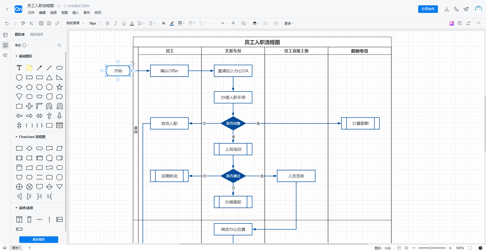 团队协作:HR团队可以多人同时编辑一张流程图,评论沟通,实时保存,告别反复传文件。