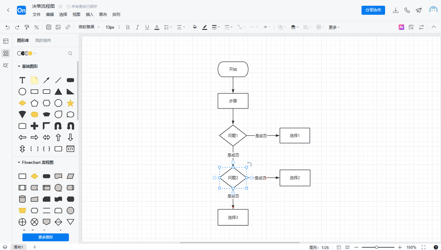绘制决策流程图的工具有很多,选择一款趁手的工具非常重要。常见的有Visio,Word,ProcessOn等,使用者可以按照需求挑选合适的决策流程图制作器。这里主要讲解如何使用ProcessOn制作决策流程图。ProcessOn是一款专业的在线绘图制作器,支持绘制流程图,思维导图,UML图,网络拓扑图等专业图形的绘制,站内包含上万模板,可以快速创建图形,同时支持和他人共同协作编辑。