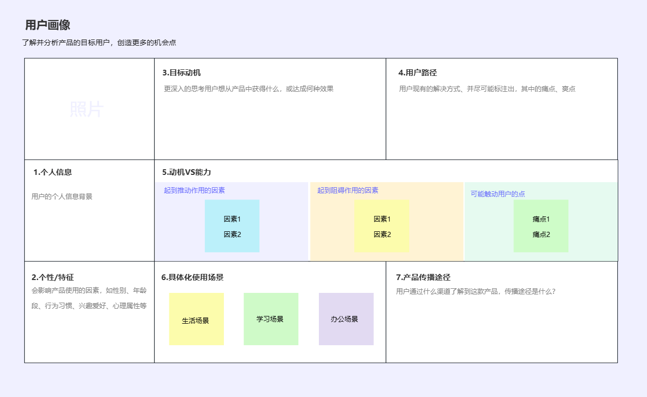 为每个细分市场创建一个“人物卡片”,包含姓名、年龄、职业、痛点、需求、行为习惯等。用思维导图或卡片式布局,让每个细分市场变得鲜活。