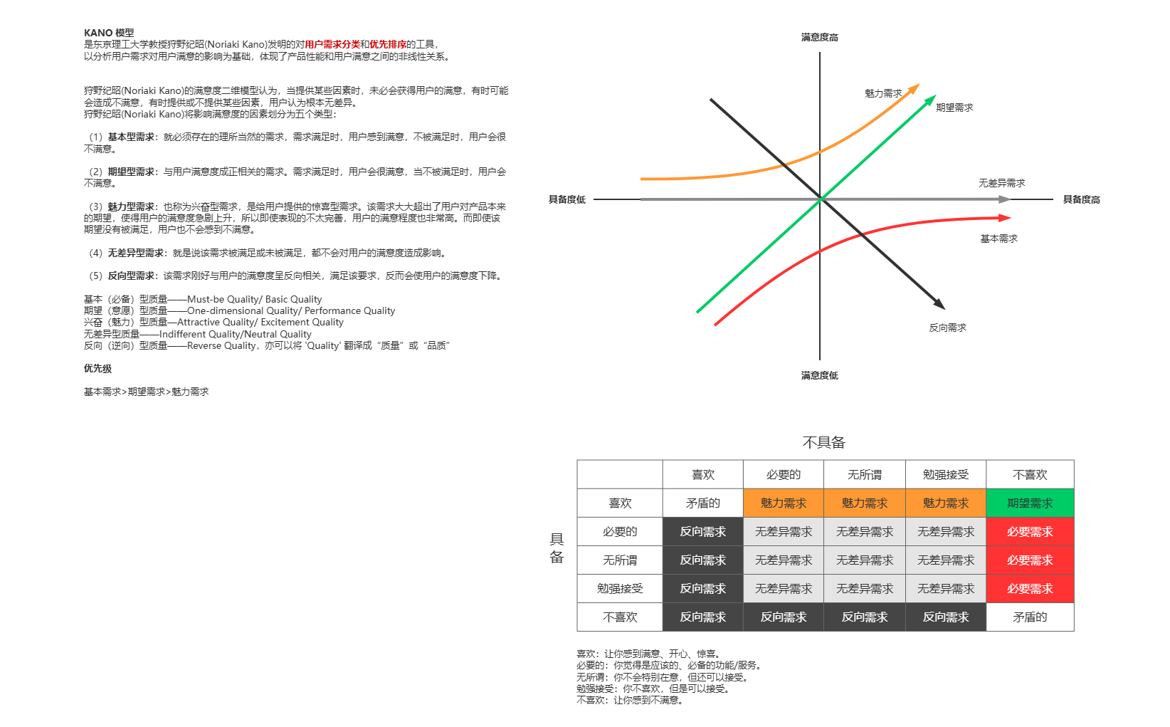 KANO模型是需求筛选的经典工具,它将需求分为五类: