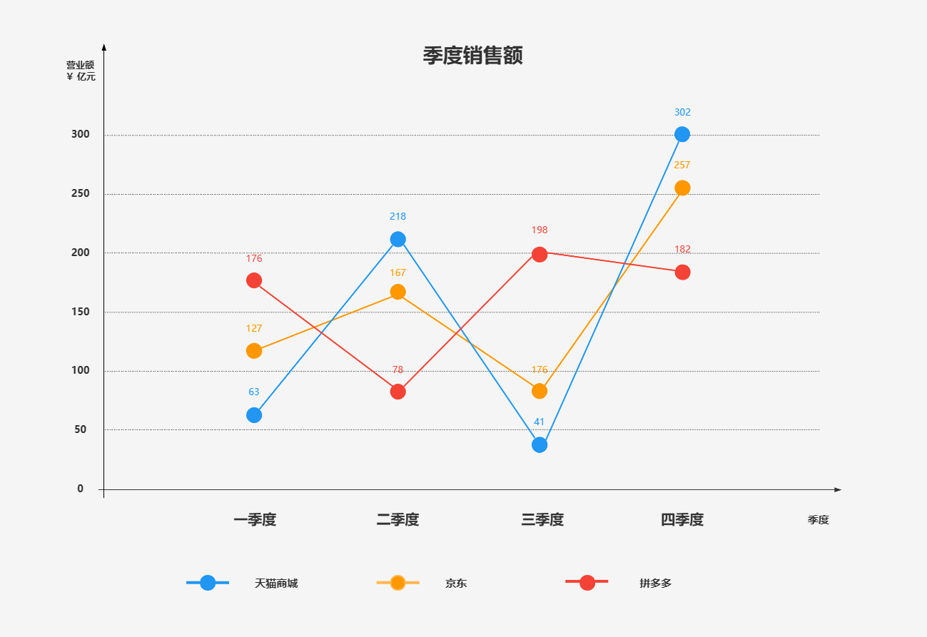 应用场景:适用于对比多个变量的变化,如不同产品的销售额、不同地区的气温变化等。
