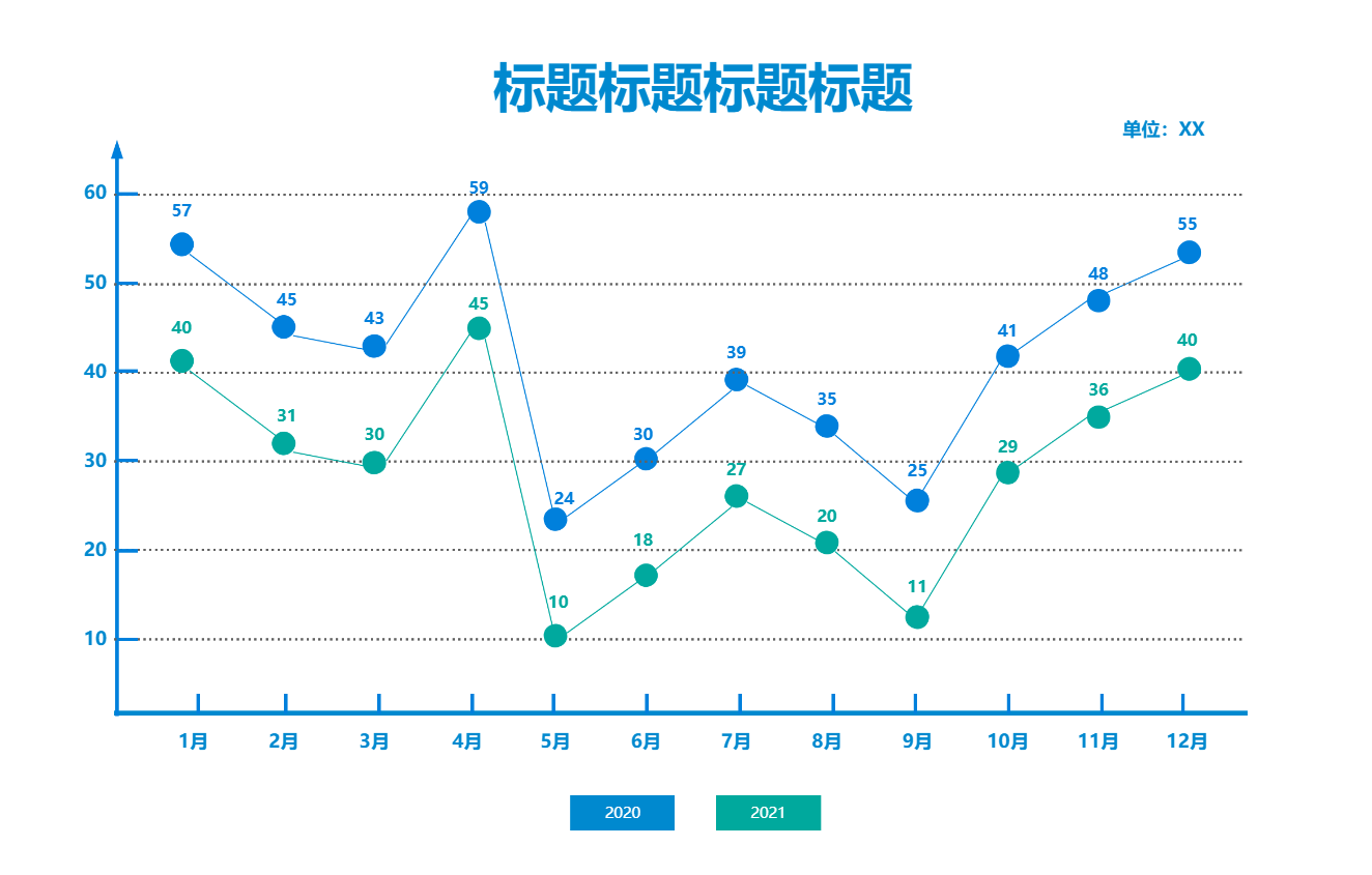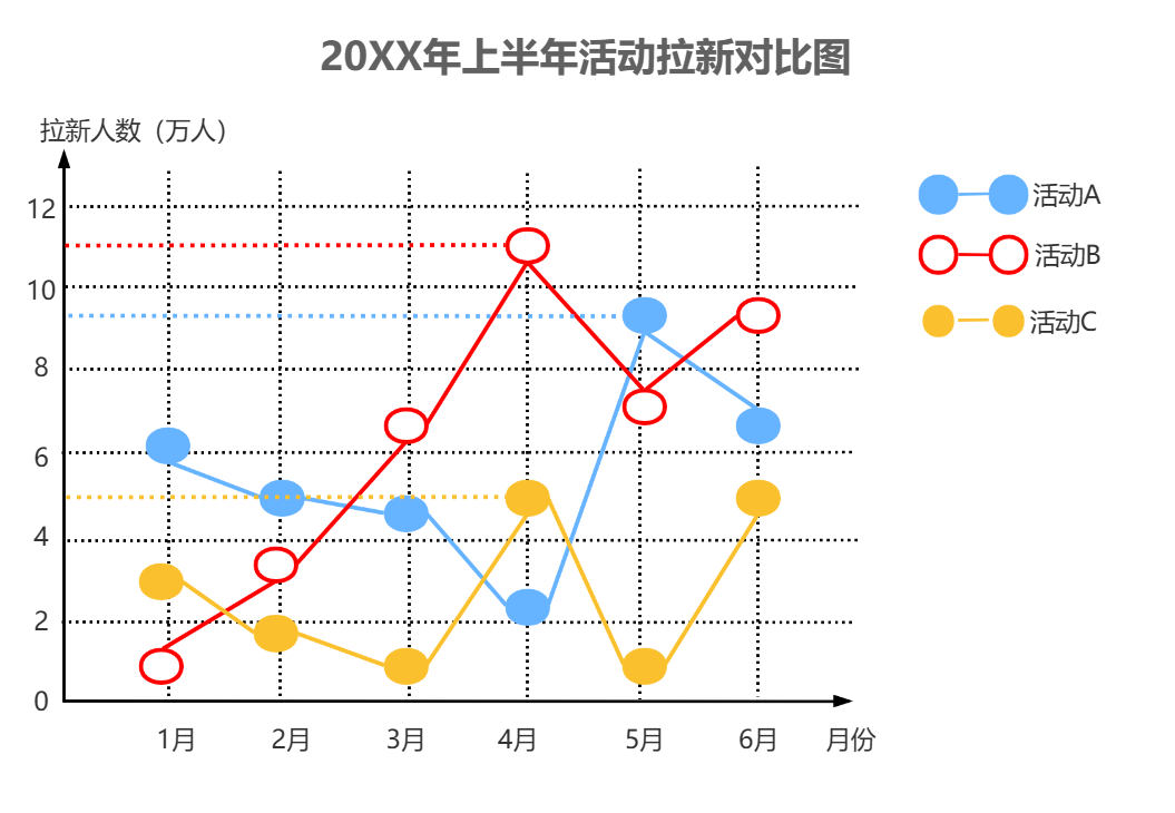 折线图,属于对比图的一种,是通过一系列连续的线段连接数据点,以展示数据随时间或其他连续变量变化的趋势。它强调的是数据点之间的连续性和变化率,而非单个数据点的具体值。折线图通常用于展示时间序列数据,如股票价格、气温变化、销售额增长等。