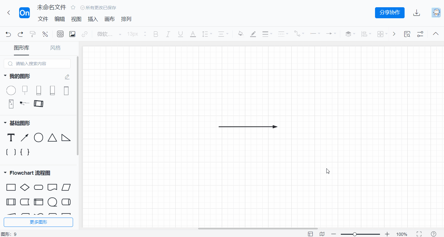 右击画布-创建连线,或者L快捷键插入线条,然后选中线条,在菜单栏终点中进行设置。