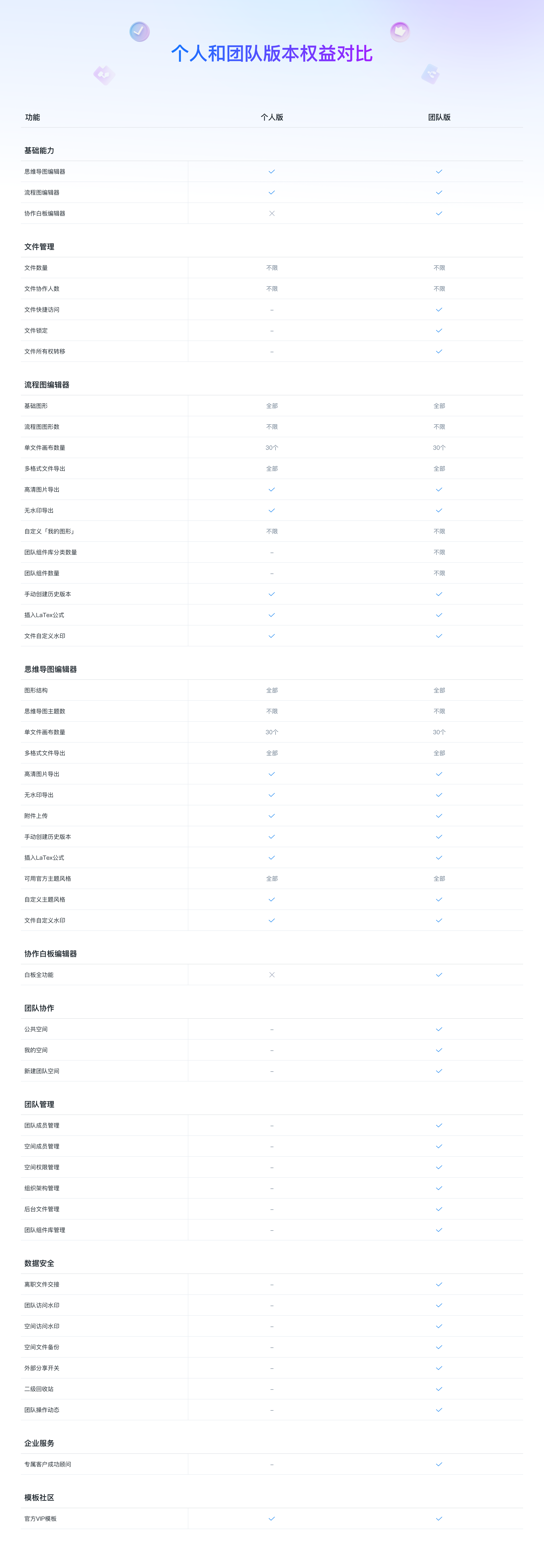 (*产品迭代速度较快,下方表格可能更新不及时,请以实际权益为准。)